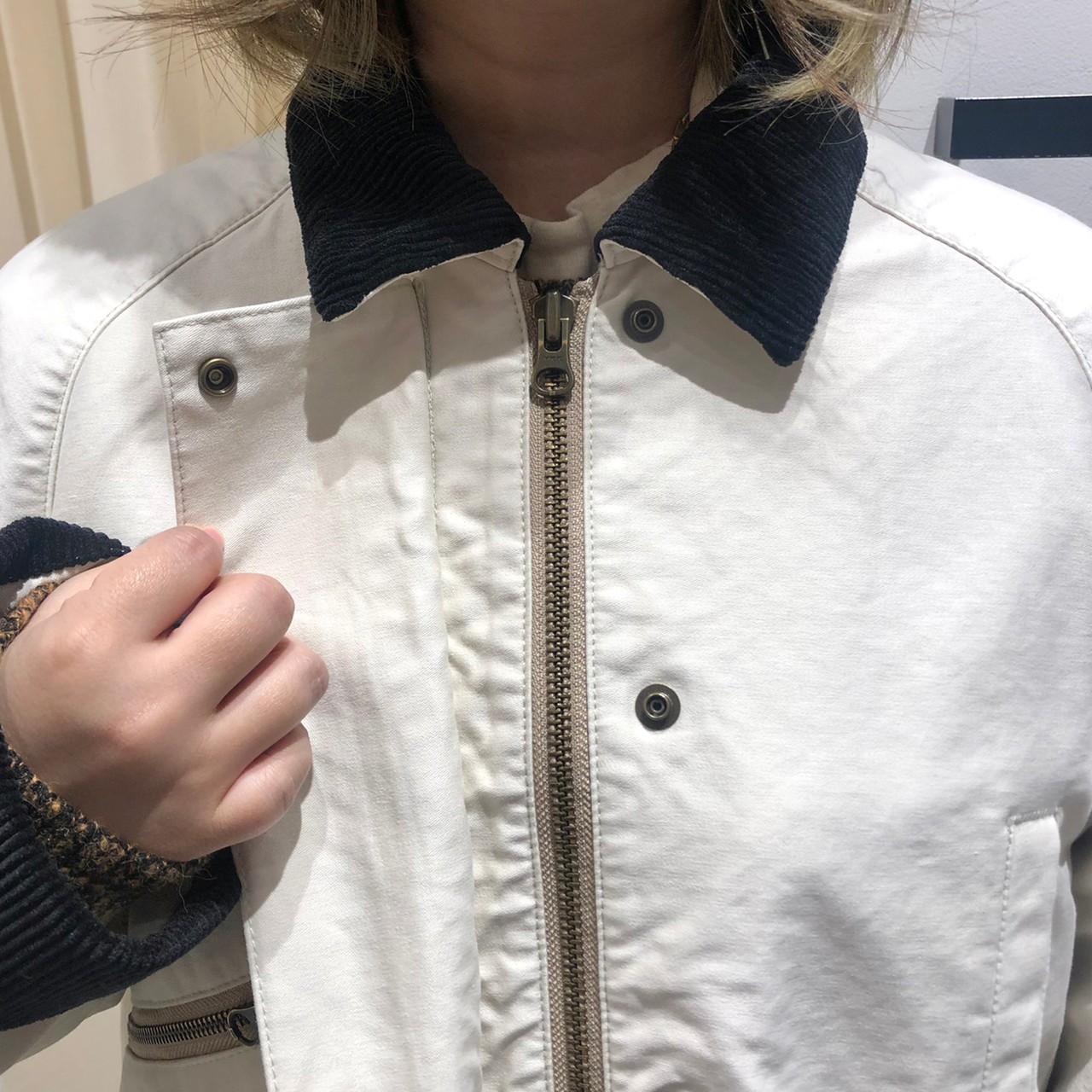 襟、袖周りにあしらわれたコーデュロイがアクセントになったデザインです!