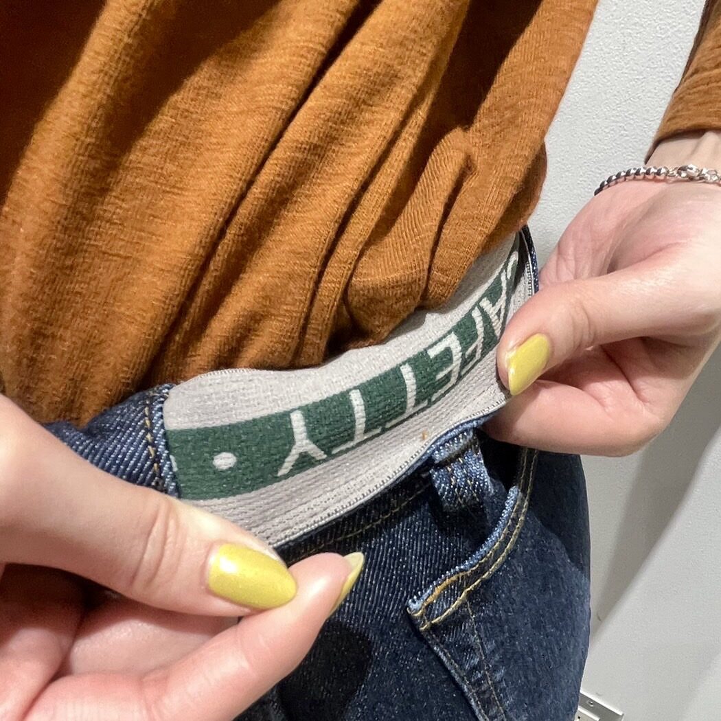 合わせたデニムパンツは、【Cafetty】の新作です!綿100%の様な表情を持つCafettyの定番素材【ストリィキングストレッチデニム】。腰まわりに程よいゆとりを持たせ、裾に向かってすっきりテーパードしていくCafetty1番人気のシルエット。何にでも合わせやすいシンプルなデザイン×シルエットでヘビロテ間違いなし!!