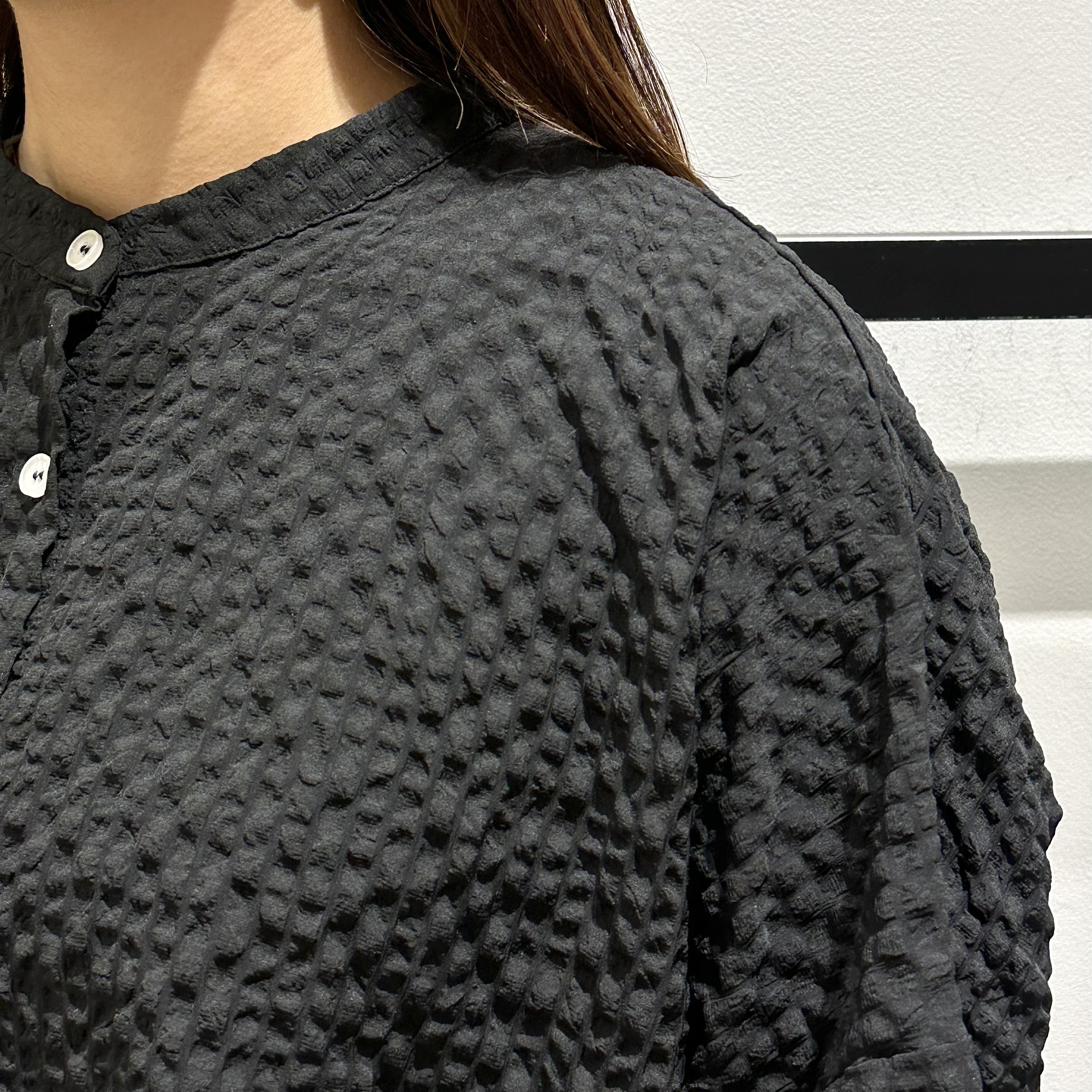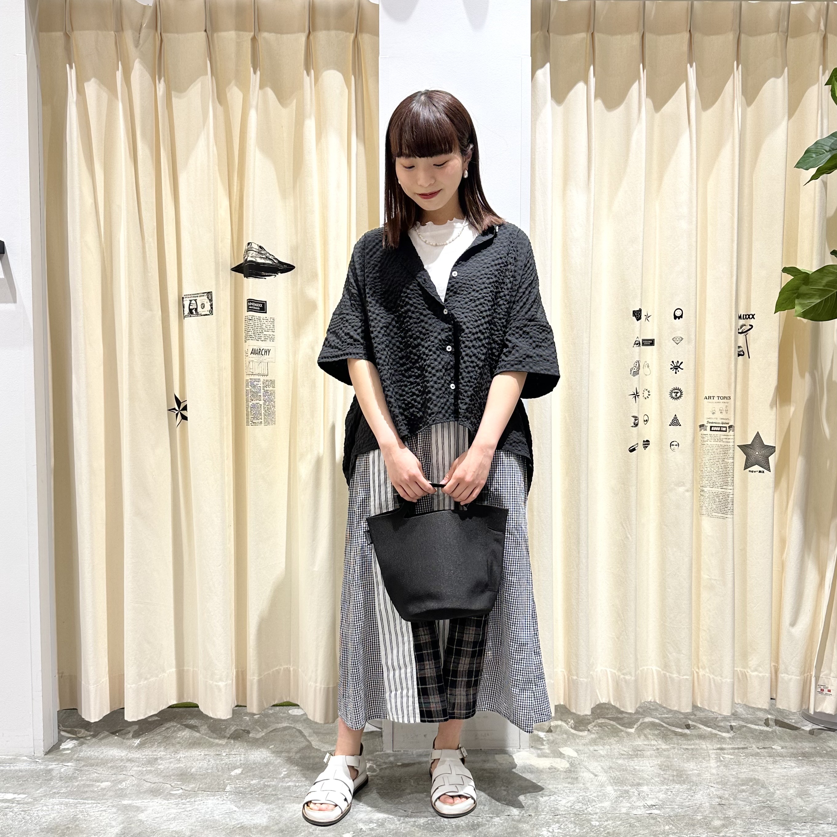 メインの黒シャツは【COLORK】のアイテム。ポコポコとした生地感が今っぽさ&涼しげな1枚♩コットン素材で肌触り柔らか。袖丈長めで二の腕カバーもばっちり◎後ろのギャザー切り替えが素敵です。