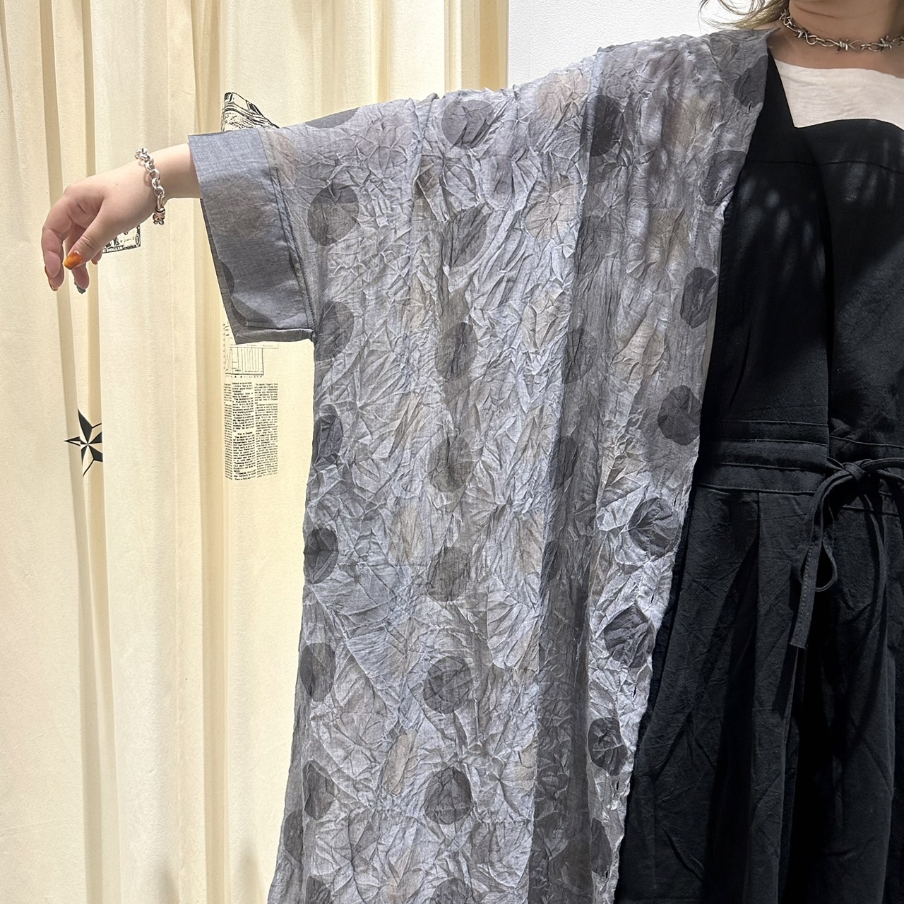 こちらは【COLORK】のアイテム。大きめなドット柄ですが、落ち着いた色味なので普段柄物を着られない方でもトライしやすいですよ◎程よい透け感が涼しげでこれからの季節の羽織にぴったり♩ボタンを閉じてワンピースとしても着られるので着回し力抜群です!