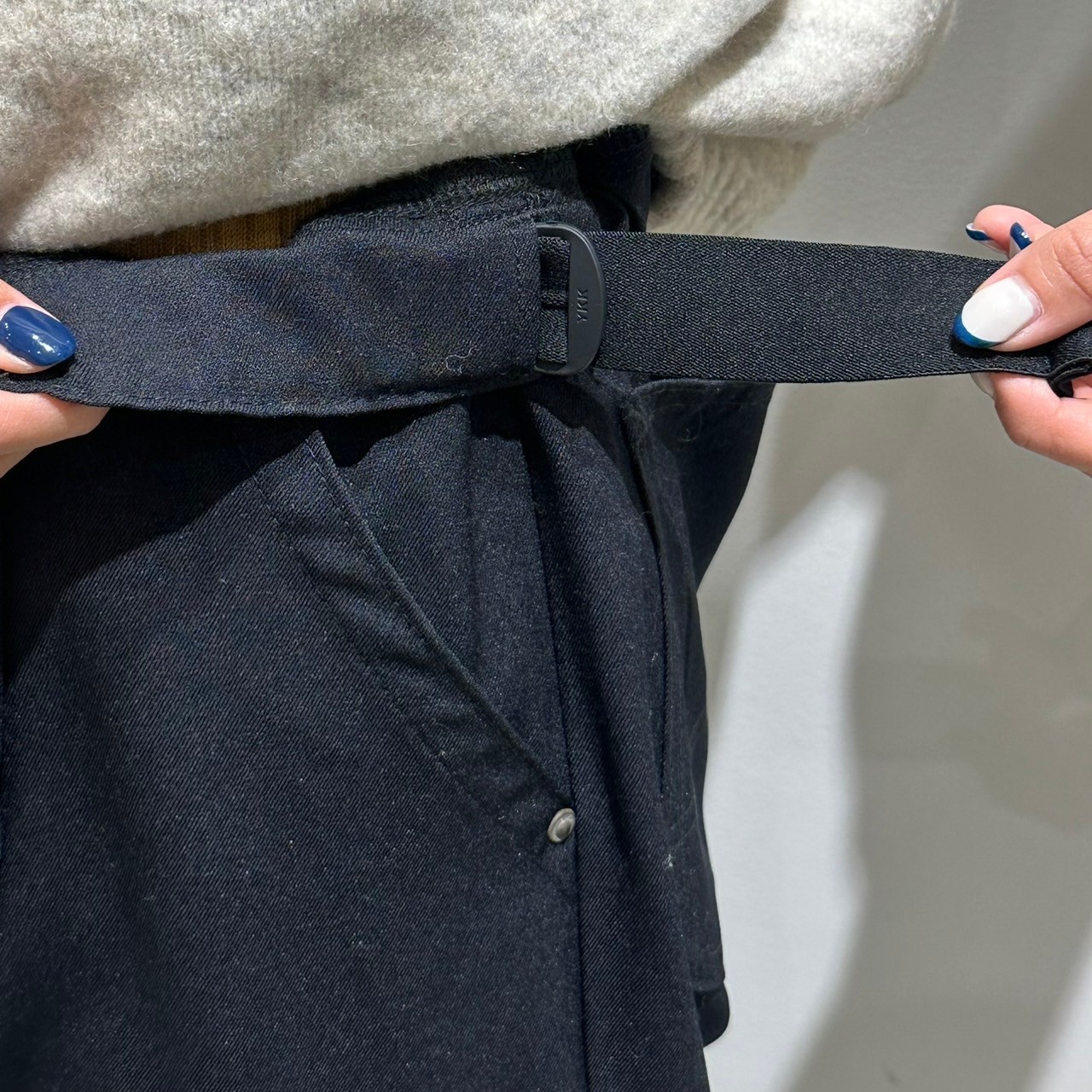 内側両サイドにゴムベルトが付いているのでご自身でお好きなサイズ感に調節することが可能です◎