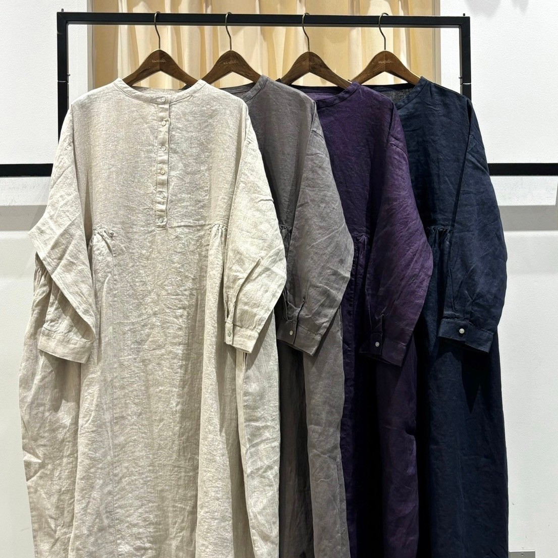 麻100%ですが、秋冬仕様でしっかりめの生地感。透け感もあまりないのでこれからの時期でも着て頂けます^^