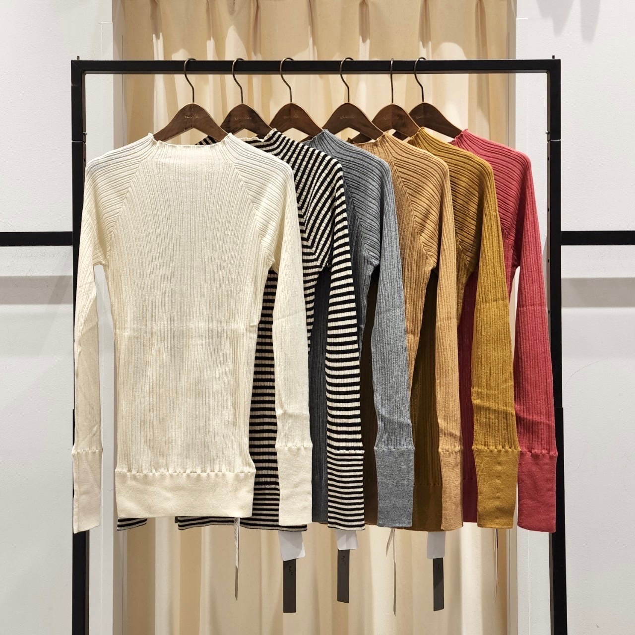 コットンリブメローネックニット