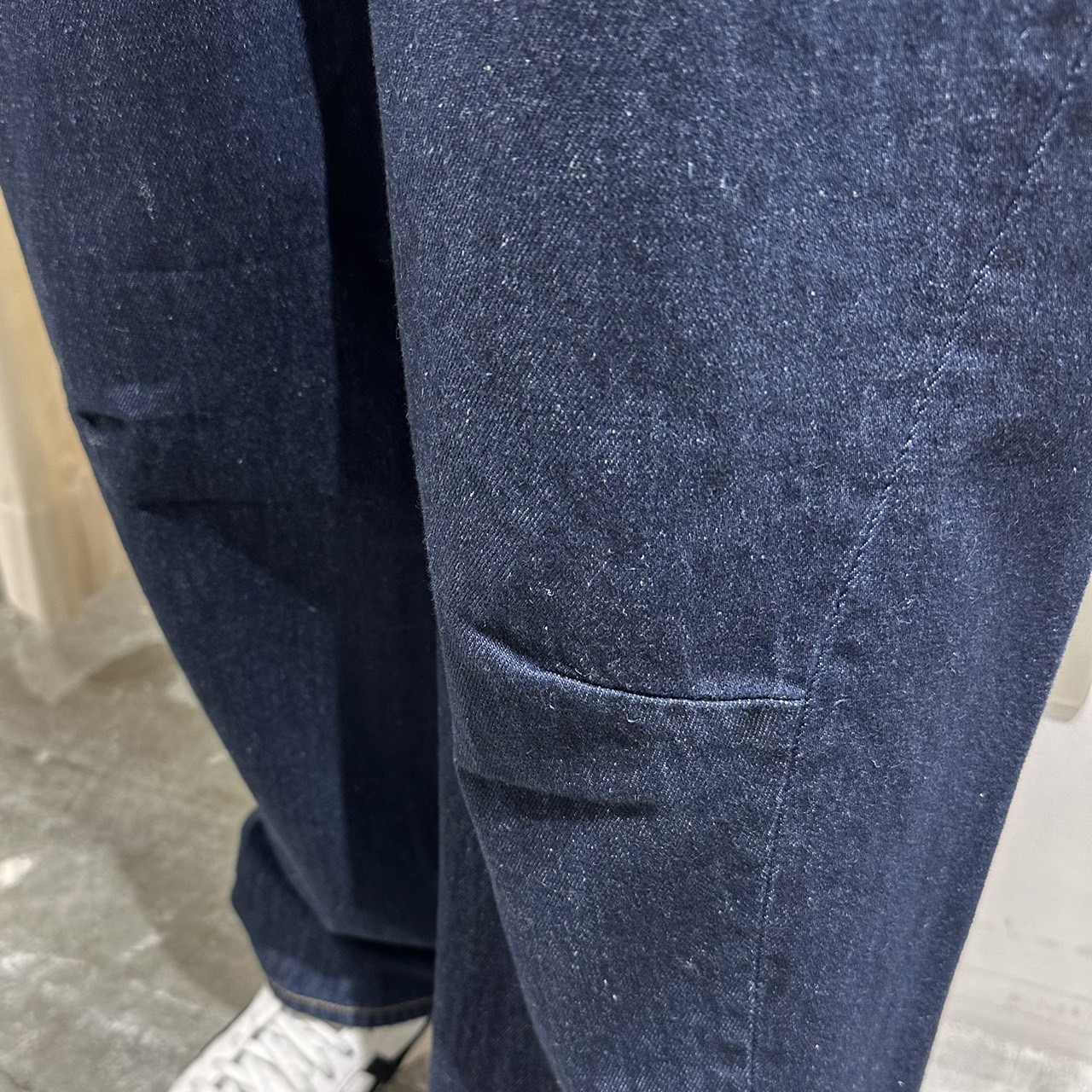フロントのタック、膝のダーツや後裾のタックが立体的に見えるので、キレイめやカジュアルに合わせやすいシルエット。