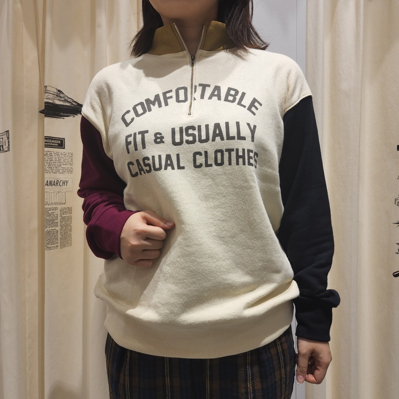 ハーフジップが特徴的なこちらのトップスは、今回は1枚で着用しましたが、ファスナーを閉めたスポーティーな着こなしや、開けてインナーをチラ見せさせたレイヤードスタイルもおすすめです✨