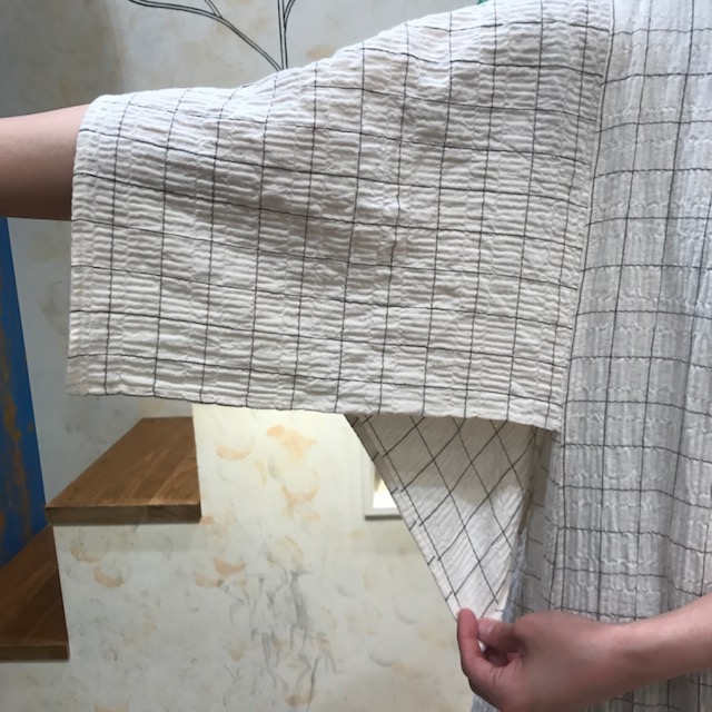 この大きさのギンガムならワンピースに重ね着して裾からチラ見せにも◎