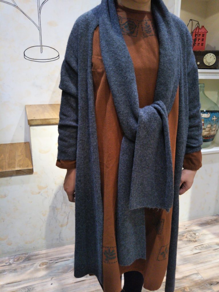 大人気08Mabのニットワンピースの中に更にワンピースを重ねたコーデになります☆
