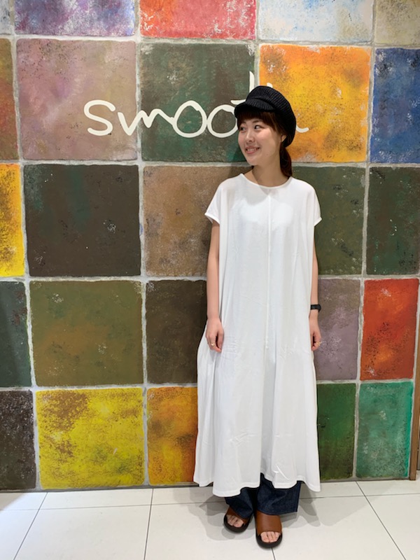 シャツが引き立つように、中のワンピースは白のシンプルなデザインの物をチョイス♪