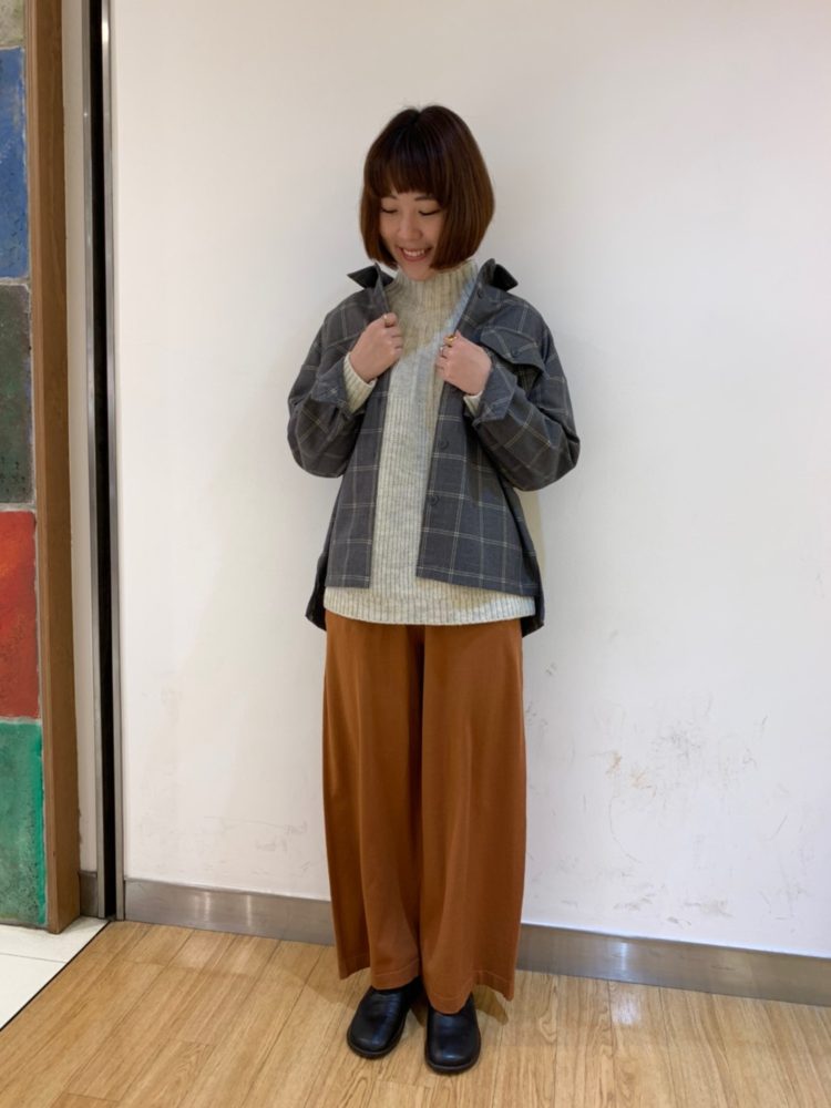 オフショルダーとしても着られるので、タートルネックのインナーや襟付きシャツと合わせるのがおすすめ☆