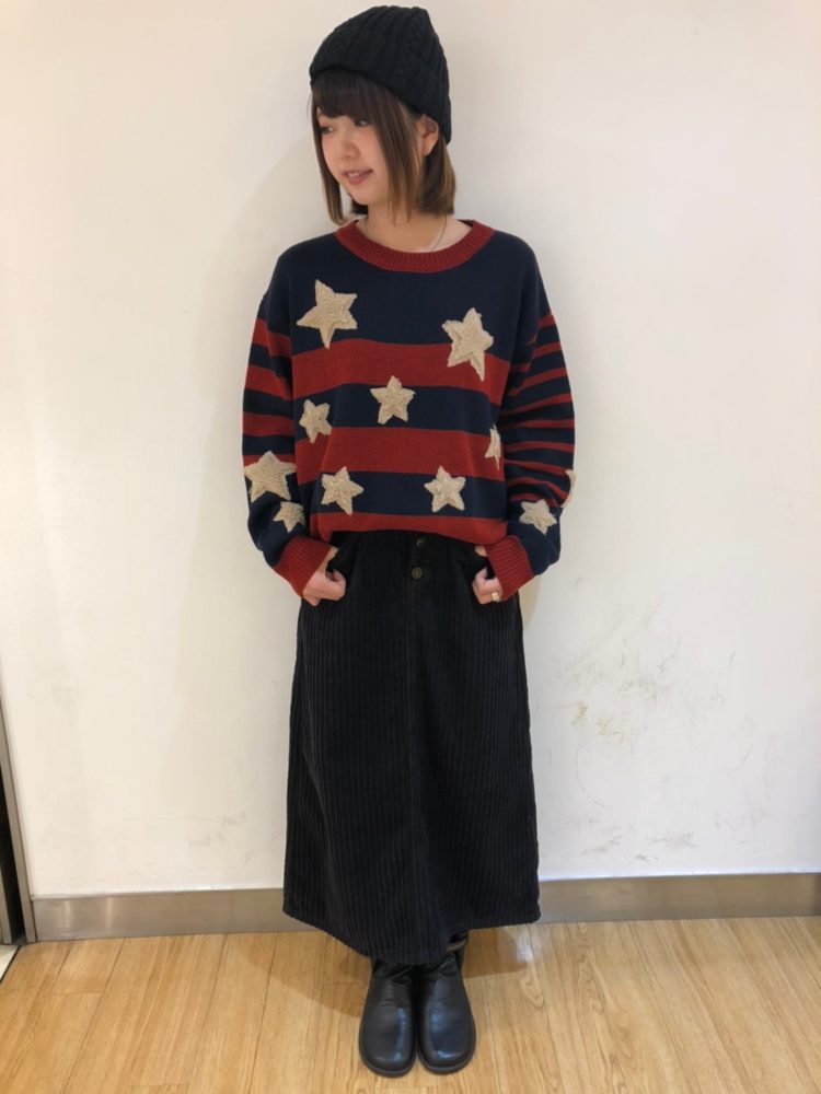 星とボーダーを組み合わせた個性的なデザインは、ダークになりがちな冬のコーディネートを一気に華やかにしてくれますね!