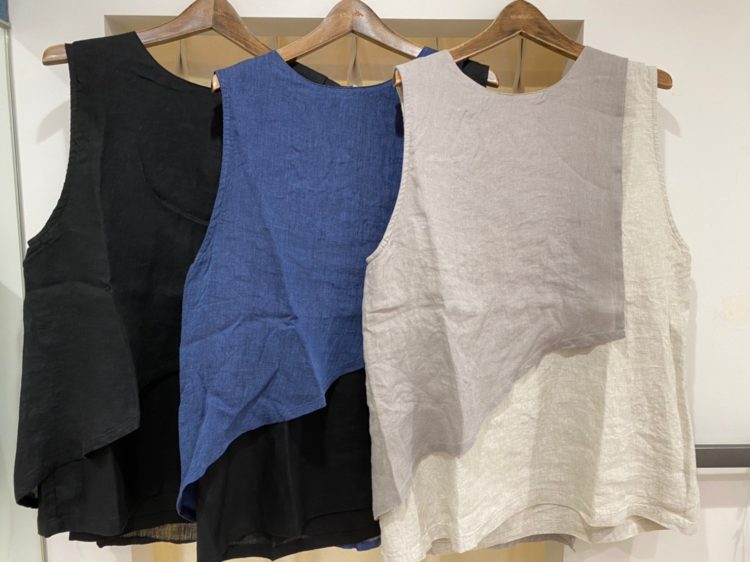 サラリとした肌触りの良いリネン生地で、シャンブレー特有のニュアンスのある色味が特徴的。