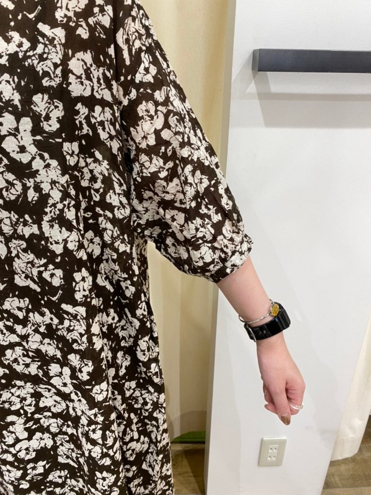 こちらのワンピースは、全身花柄ですがどこかレトロ感も感じられる、派手過ぎず普段使いしやすい1枚。