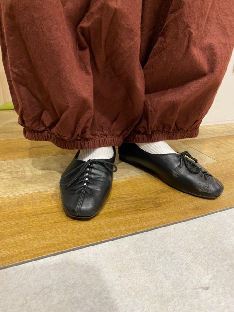 裾を絞ったギャザーたっぷりのバルーンシルエットが、