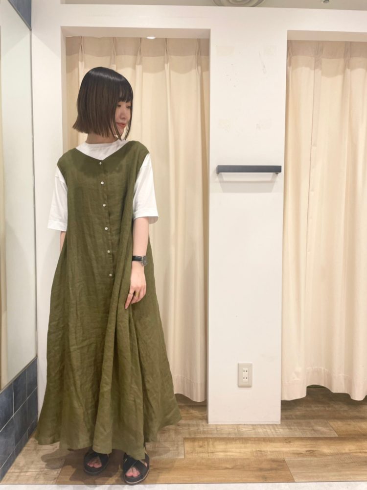 【08Mab】リネンヘリンボーン多ボタンワンピース