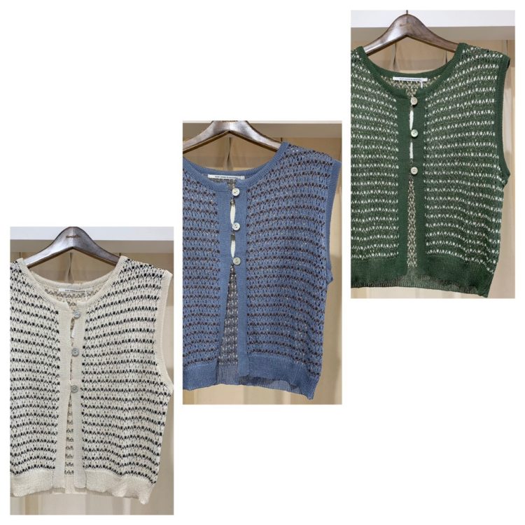 ぐっとお洒落感が増す、透かし編みのミニベストをON !!