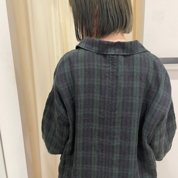 袖はボリュームのある5分丈、着丈は短めという新鮮なバランスですが、生地のハリにより綺麗なラインが生まれ一枚でもサマに着られる一枚です◎