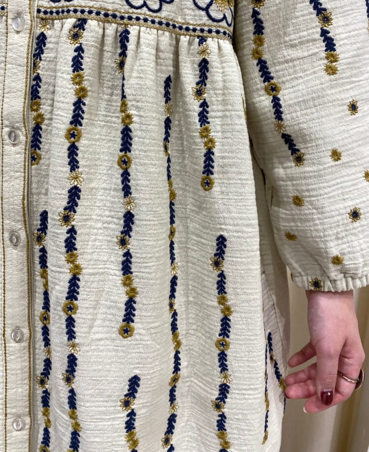 アネモネの花と、小花をストライプ状に描いた、どこかノスタルジックな雰囲気が感じられる一枚。