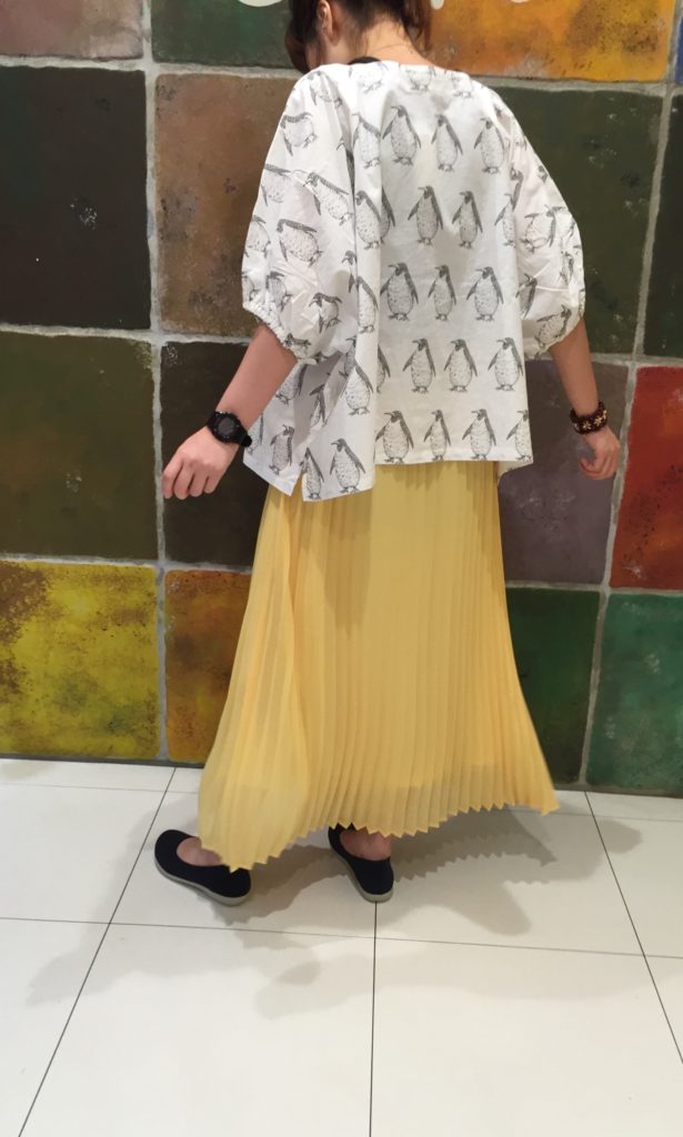 ②【ペンペン柄はプリーツスカートでキレイ目に♪】