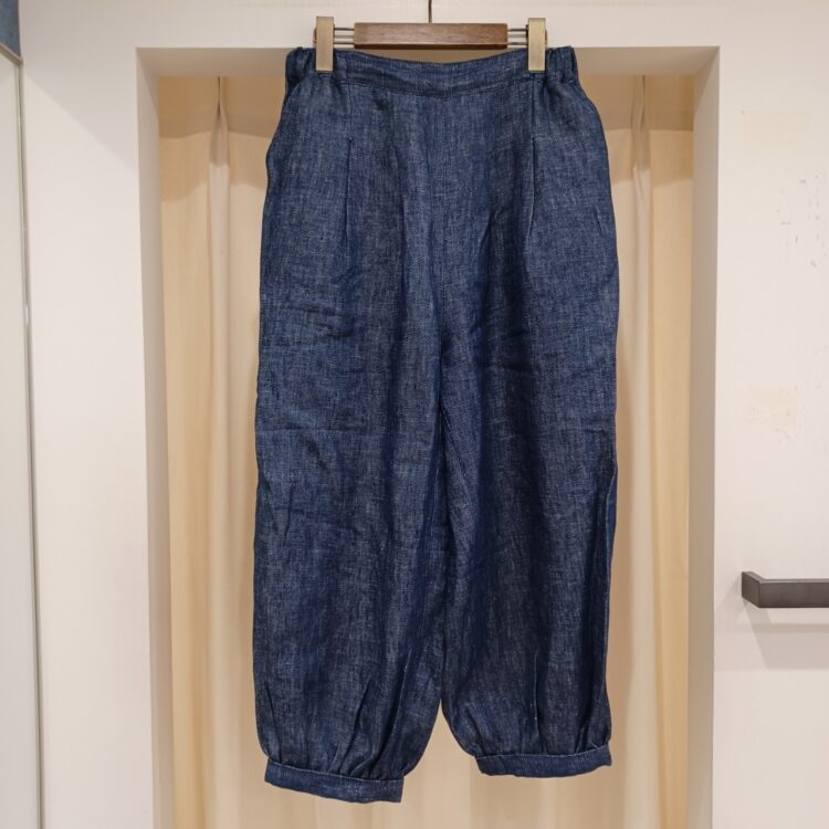 リネン素材のやわらかなデニム生地を使用したギャザーパンツ。
