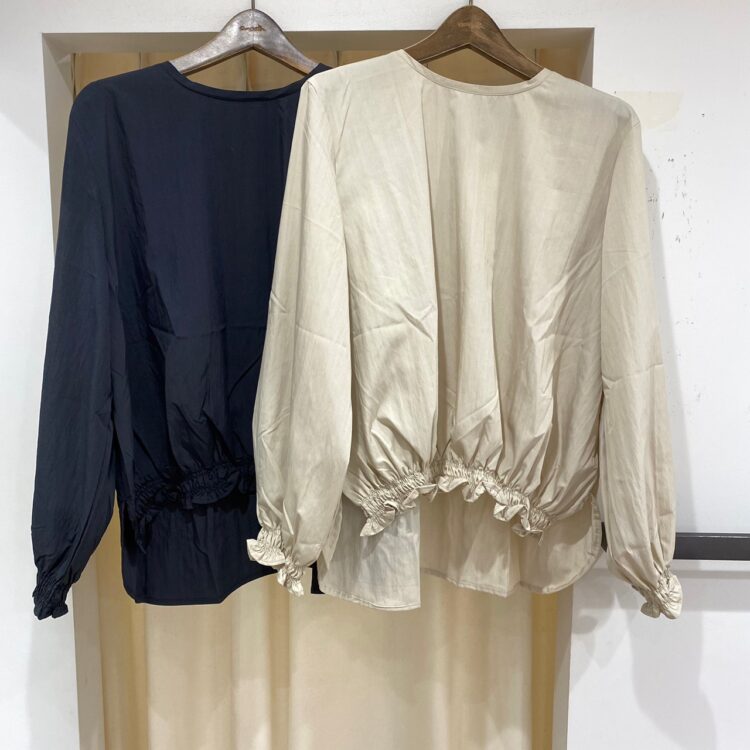 ナイロン混素材を使用した春らしいプルオーバーブラウス。