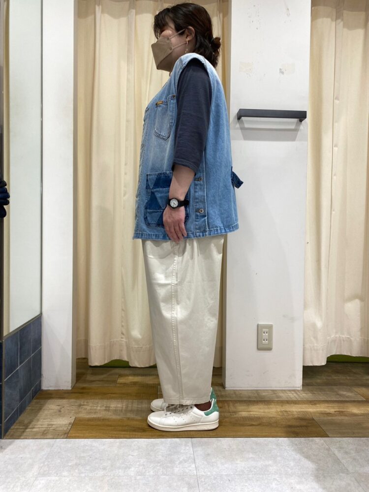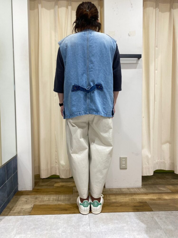 そこまでワイド感はないですが、カチッとし過ぎずラフな印象なのでパンツスタイルとの相性もピッタリです。