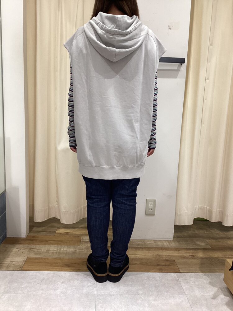mini裏毛ピグメント加工パーカーロングベスト