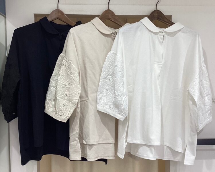 ゆったりとしたシルエットで胸元のギャザーが女性らしい印象です!