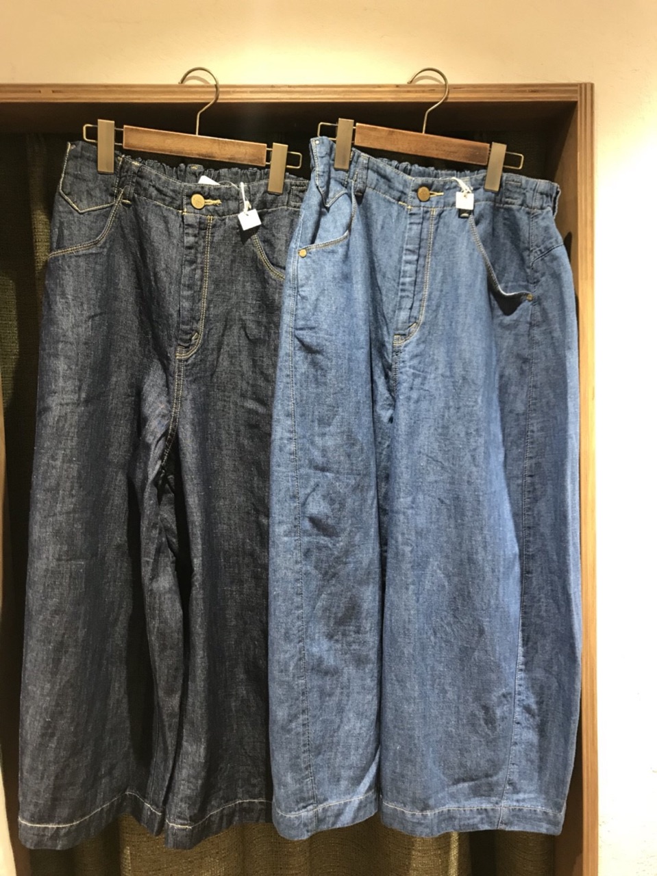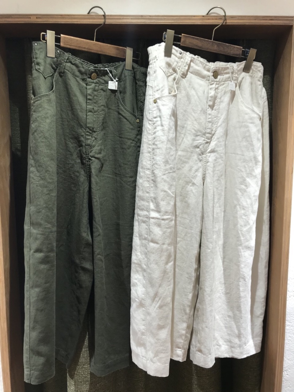 生地を摘んだようなこの加工感が、ゆったりしながらもテーパードパンツのような、