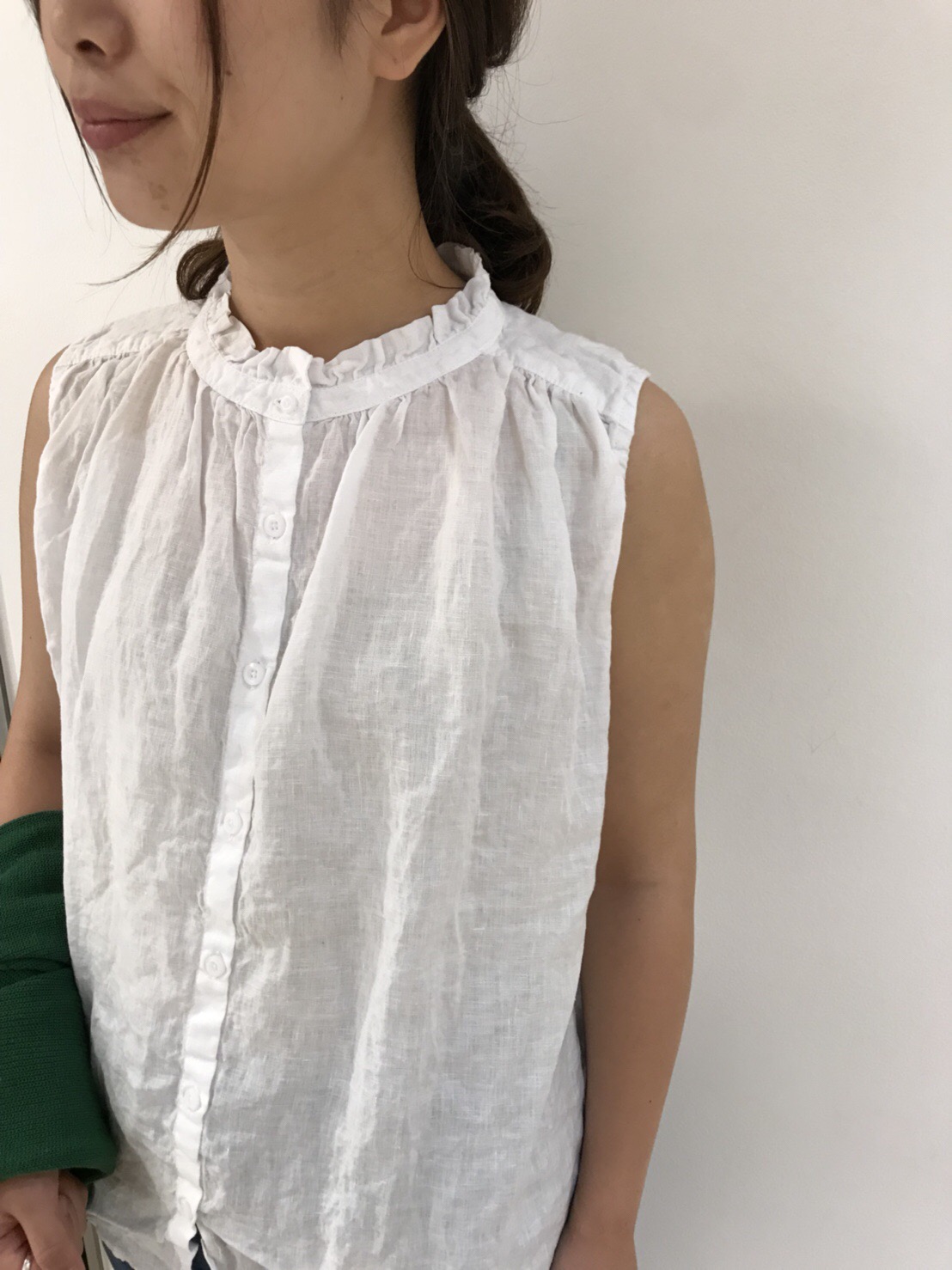 前開きのブラウスなので、中にカットソーなどを持ってきて羽織にしてもいいですね!