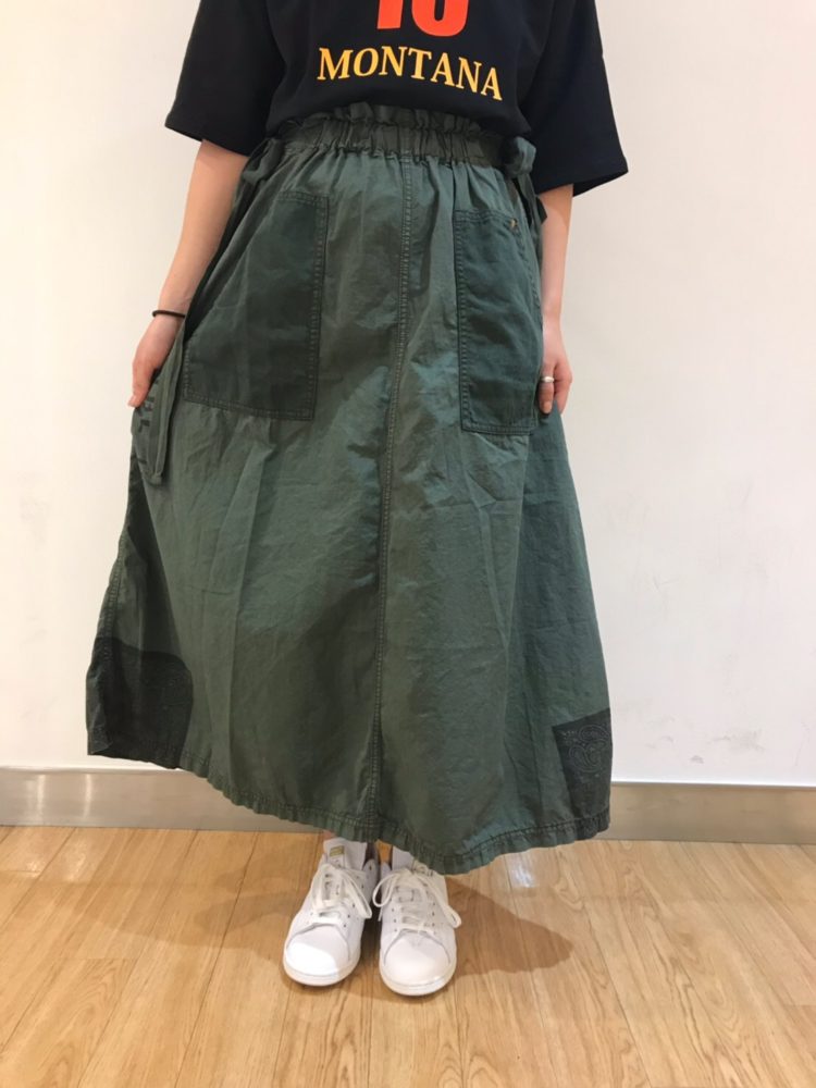 usedな雰囲気が、バツグンの存在感を出しているリメイクギャザースカート。