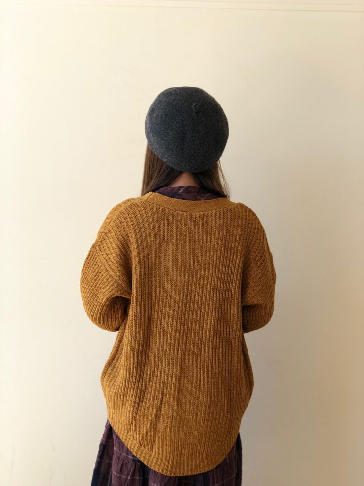 【ABアクリルVネックカーディガン】 No.120-939-0093038 Col.オフシロ、チャコール、 マスタード(着用)、グリーン、ネイビー Size.F PRICE¥3,500+税 大人可愛いVネックカーディガン♪ 少し余裕を持って着られるサイズ感! 優しい肌触りなので、 着心地が良いです。 羽織りとしてだけでなく、 トップスとして着ても◎ スカートやワンピースとのコーディネートに 合わせやすいアイテムです!
