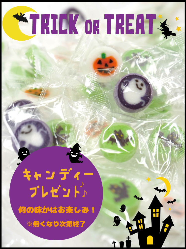 最後にお知らせが! 只今、urnis outlet店では バーニッシュハウスカード会員様や アプリに新規ご登録頂いたお客様に ハロウィンキャンディーをプレゼント! お子様は店頭スタッフに 『トリックオアトリート』の合言葉を 仰って頂けるとキャンディーを プレゼント致します♡ ※ノベルティは数に限りがございます。 無くなり次第終了となりますので 予めご了承下さいませ。皆様のご来店お待ちしております!!