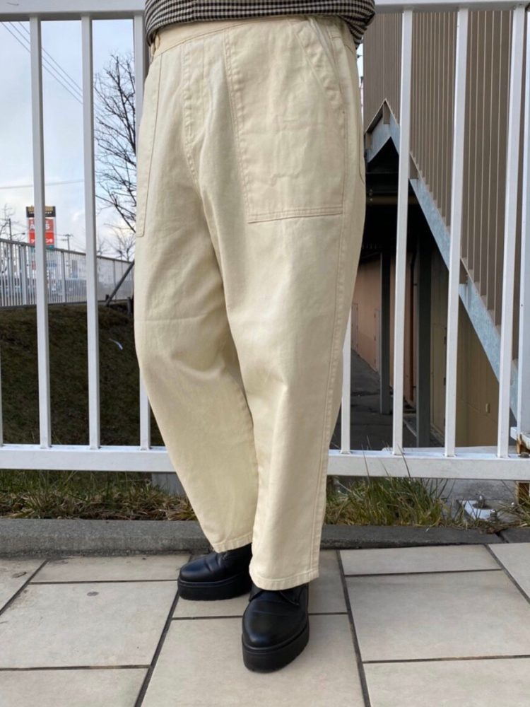 model:H160cm 【イージーボールPT】 No.160-949-0TP9839 Size.M(ナチュラルのみL有り) Col.ナチュラル(着用)、グレー、チャコール PRICE¥4,900+税 ワイドなボリューム感と テーパードのスッキリ感をミックスさせた イージーボールパンツ。 半端丈のバランスも絶妙で ヌプシブーティーやサイドゴアブーツ等 ショートブーツとの相性もバッチリ☆ トップスをシャツやブラックのカーディガン等、 モノトーンで揃えてシックに着こなしても◎! ウエストはゴム仕様で 紐も通っているので好みのウエスト位置に 調整することができます♪ カラーはこちら!