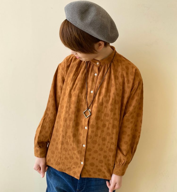 【ダブルガーゼドットJQギャザーBL】 No.092-006-0611037 Size.F Col.オフシロ、ベージュ、ピンク、マスタード(着用) PRICE¥2,900+税 衿元にギャザーでボリューム感を持たせた、 ふんわりシルエットのAラインブラウス♪ ランダムに散りばめられたドット柄が 主張し過ぎず、さりげなく目を引き、 コーデのワンポイントに取り入れやすいですよ◎ 通気性に優れたダブルガーゼを使用し、 綿とレーヨン混合なので 肌なじみ良く着られます♡ カラーはこちら!