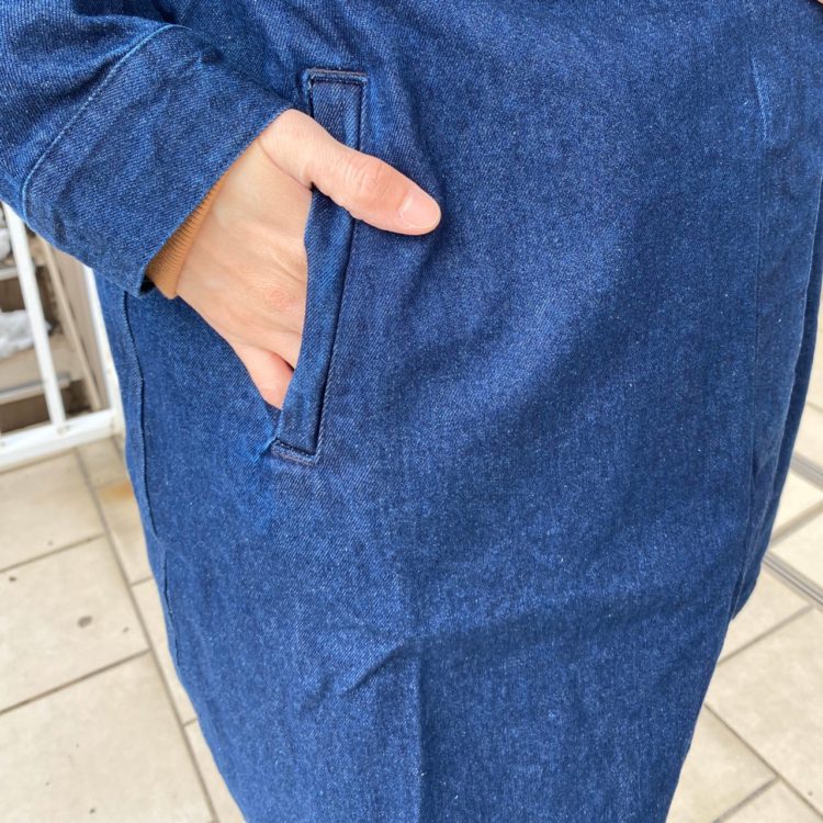アウトレット店限定アイテムでデニムコート×スウェットチュニックコーデ