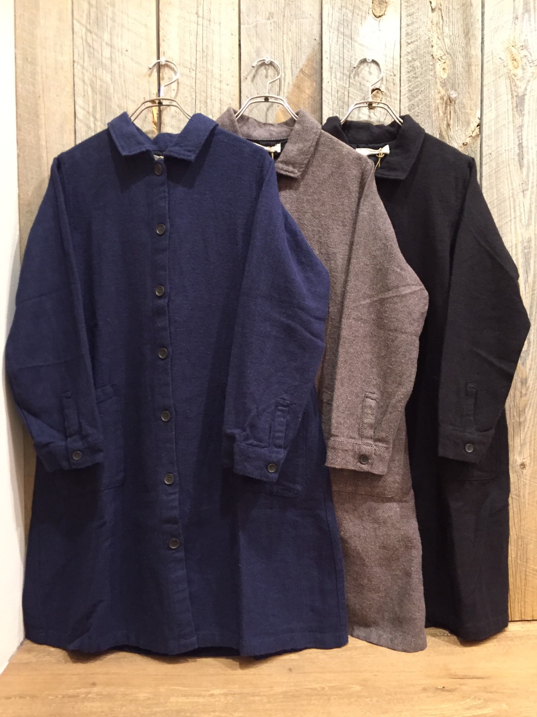 [綿麻ツイル起毛ステンカラーコート長袖]