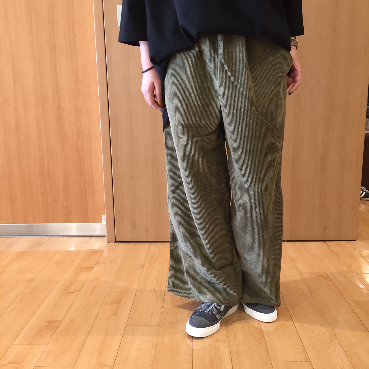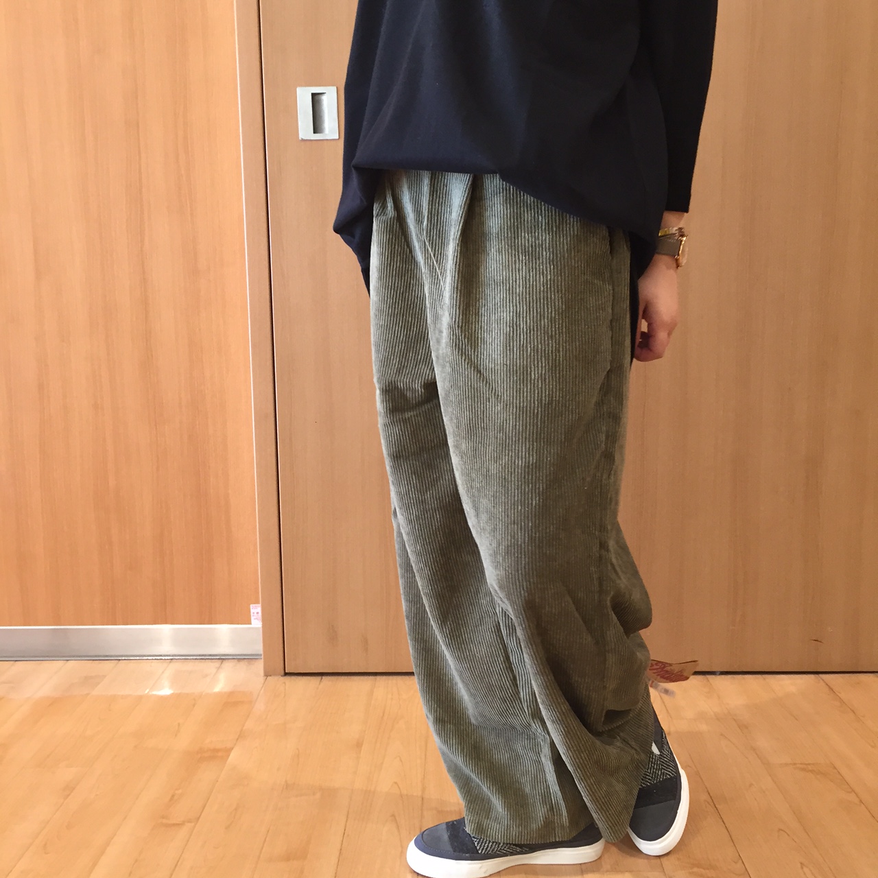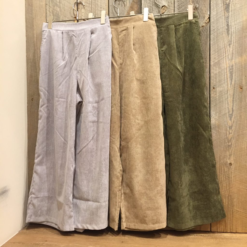 【タックワイドパンツ】 No.182-701-0031136 Col.グレー、ベージュ、カーキ Size.F Price.¥4,900+税→¥1,900 コーデュロイのワイドパンツです! 綿やデニムのワイドパンツを お持ちの方は多いと思いますが こう言った素材のパンツも1本あるだけで コーデに季節感がでるのでオススメです♡ ウエストはゴムなので 食欲の秋にはもってこい!!!笑 裾も広がりすぎないので、スッキリみえますよ♪♪ 以上!!山ブロでした!! 次回の更新もお楽しみに♡