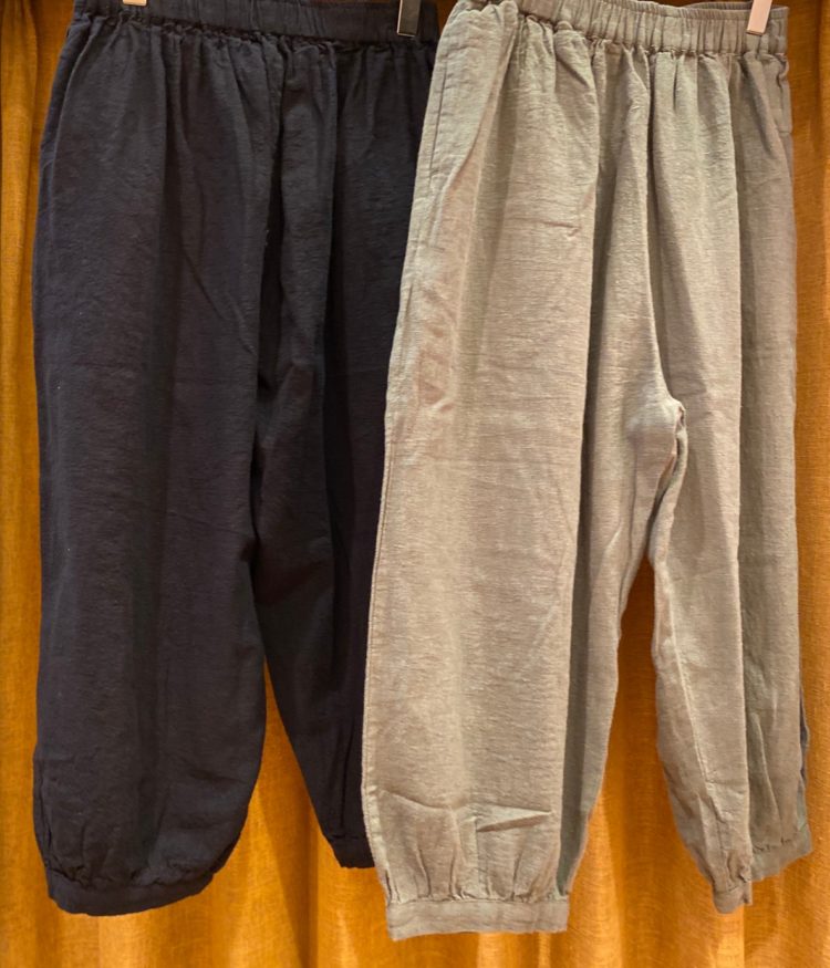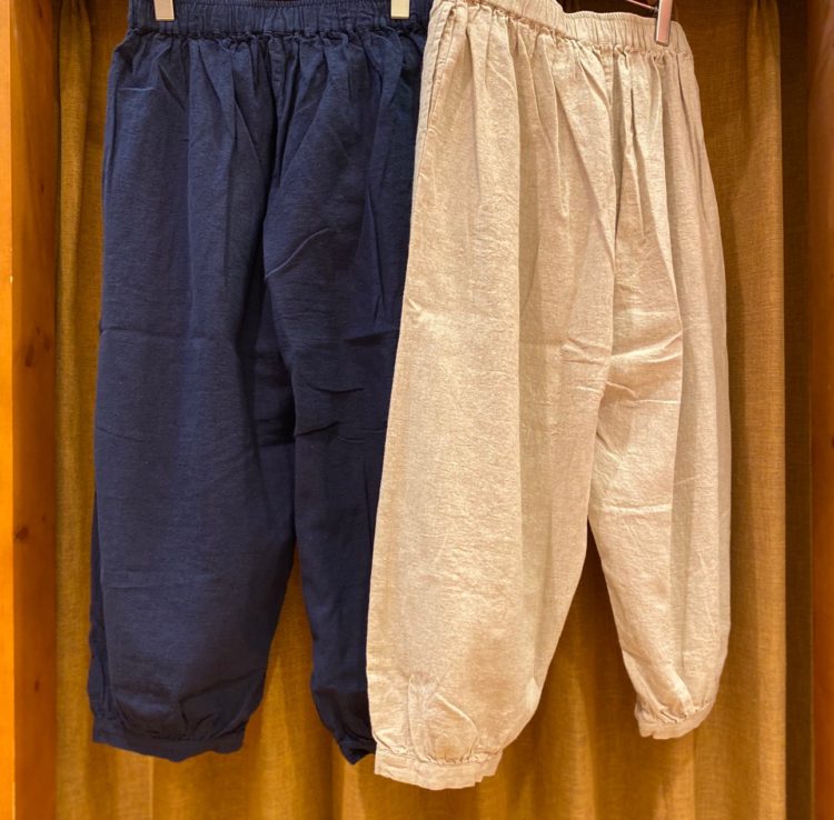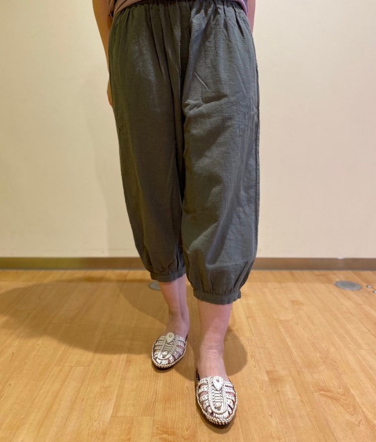 【綿麻平織PT】 No.008-017-SK40512 Col.ナチュラル.ネイビー. カーキ(着用).ブラック. Size.M PRICE¥4,900+税 裾に向かって丸みを帯びた バルーンシルエットのパンツ♪ チュニックやワンピースの裾から ちらりと覗かせてこなれ感をプラス! 綿麻素材なので 涼しく夏でも快適に穿いて いただけます♡ カラーは4色です!
