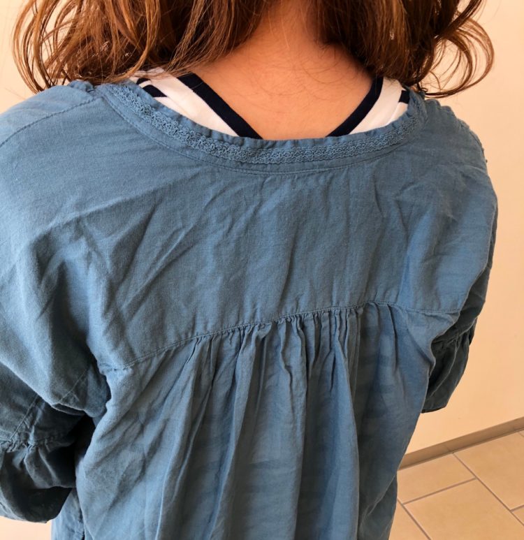 襟と袖口に施したレーステープが さりげなく甘さを添えるアクセントに!