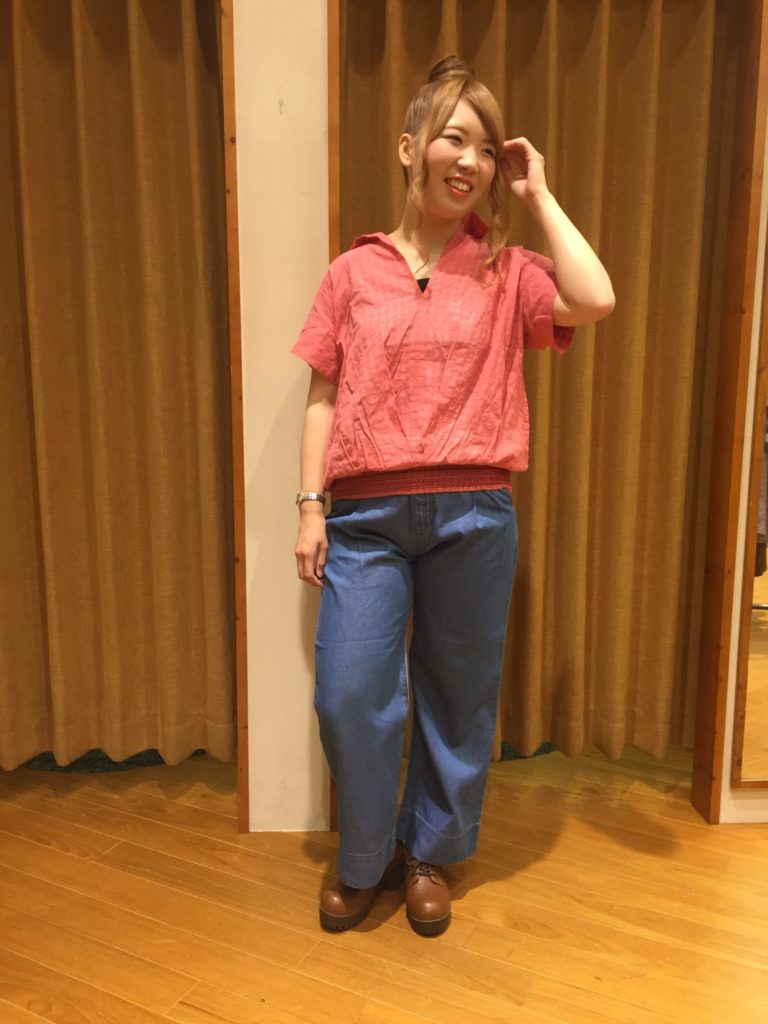 履いているワイドパンツですが、 こちらも入荷したばかりですよ〜〜