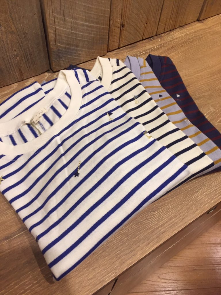 model.H160cm [星と運動会刺繍ボーダートップス] NO:160-737-0PF7593 col:ブルー、ネイビー、マスタード、アカ size:L price:¥2,900+税→¥2,500+税 [リブ使い中綿ベスト] NO:160-737-0TP7581 col:マスタード、ヒッコリー size:L price:¥4,900+税→¥3,900+税 新作秋物NORTHアイテム入荷してますよ~☆ 定番のボーダーPOもNORTHらしい 細かい刺繍が!!