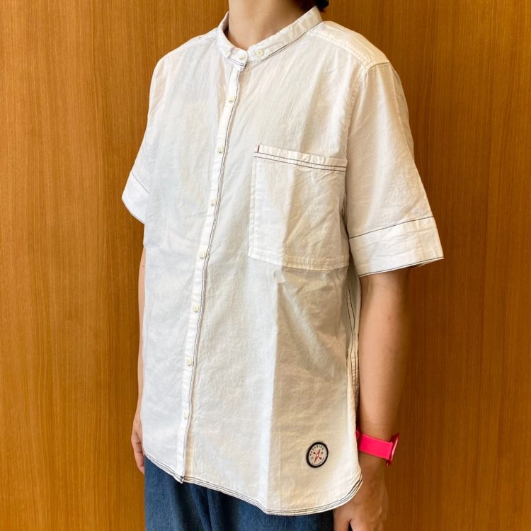 コットンのシャーリング素材を使用した 小さめの襟が可愛いシャツ。 生地に凹凸があるので 肌に触れる部分が少なく、 さらりとした肌触りで 今から夏までロングシーズン 快適に着用できます。 大きめの胸ポケットや 配色の脇のマチでアクセントをプラス♡ 色を効かせたステッチ使い& 裾のワッペンが、 ノーザントラックらしい 遊び心のある印象に♪ カラーはこちら!