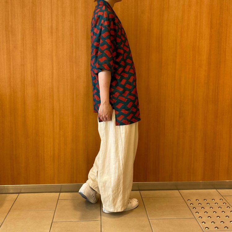 urnis outlet 北広島店のスタッフがご対応させて頂きます。 画像だけでは分かりにくい商品の気になる点や、 通信販売も承りますので、お気軽にご相談下さい♪ 波々のアフリカン柄が目を惹く アメカジスタイル好きには たまらない開襟シャツ♡ デシン生地を使用している為、 ハリ感は全くなく ドレープと落ち感に優れており テロンっとした着心地の良さが◎ ちなみに「デシン」とは、、、 生地感に少し艶とふっくら感が 出された生地のことです。 特徴としては、 ◎軽い!すっごく軽いです! ◎透けにくい! ◎シワになりにくいので洗濯機で洗える! (もちろんアイロン不要♡) ベーシックなボトムスに 合わせるだけでコーデがキマる 優れものですよ☆ カラーはこちら!
