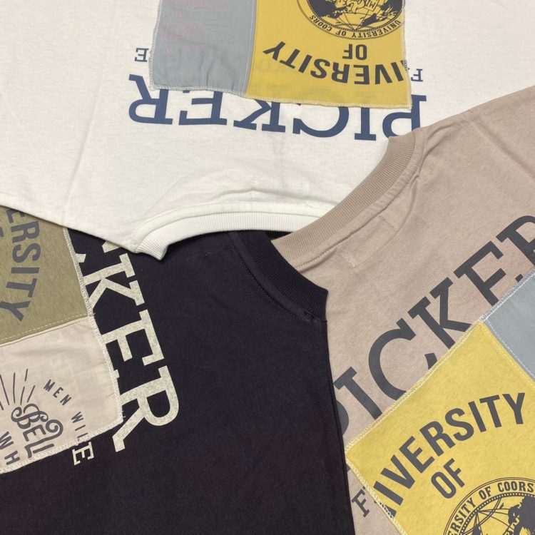 リメイク風パッチワークデザインを 背中で楽しめるトレンド感満載の1枚。フロントは胸元に、 ワンポイントロゴのシンプルデザイン。