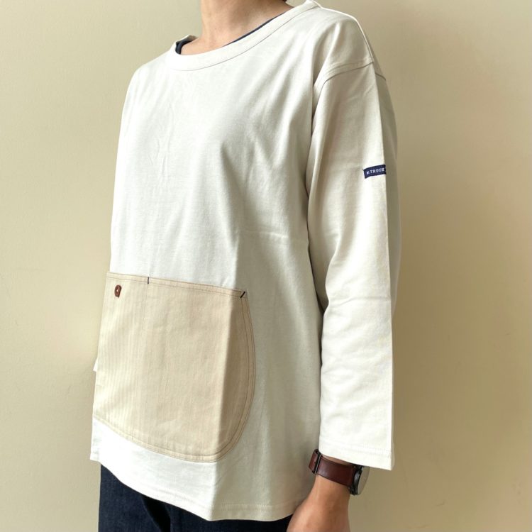 袖口を少し広げる事で腕周りを動きやすく 作業時にストレスなく着られる様に サイズ感にこだわって作られております!! ベースは伸縮性のある綿天竺なので 着心地も快適ですよ~ こちらもカラーは3色です。