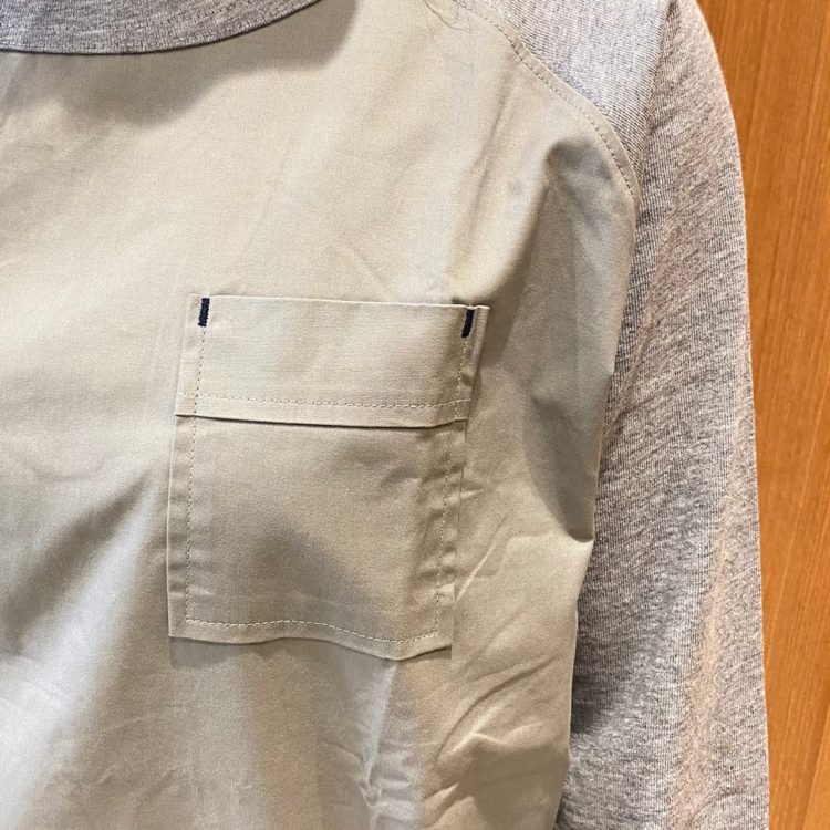 urnis outlet 北広島店のスタッフが、 直接ご対応させて頂きます。 画像だけでは分かりにくい商品の気になる点や、 通信販売も承りますので、 お気軽にご相談下さい♪ 異素材切り替えのプルオーバー 。 程よいサイズ感とラグランスリーブの デザインなのでインナーとしても、 1枚でもコーディネートが楽しめます! デイリーに取り入れやすい 着回しの効くデザイン♪ ステッチの入った胸ポケットがポイント! カラーは3色です!