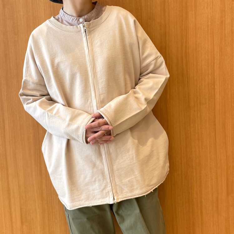 model.161cm 【USAリサイクルコットン 裏毛加工入りZIP CD】 No.120-206-00021141 Col.キナリ(着用).トップグレー ネイビー.チャコール Size.F Price.¥4,900+税(税込価格¥5,390)