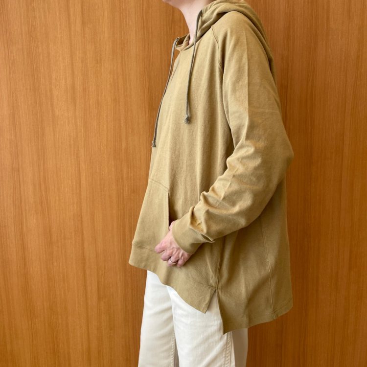 【フードチュニック】 No.404-200-0006057 Col.カーキ(着用).アイボリー.グレー Size.S.M Price.¥5,900+税(税込価格¥6,490)