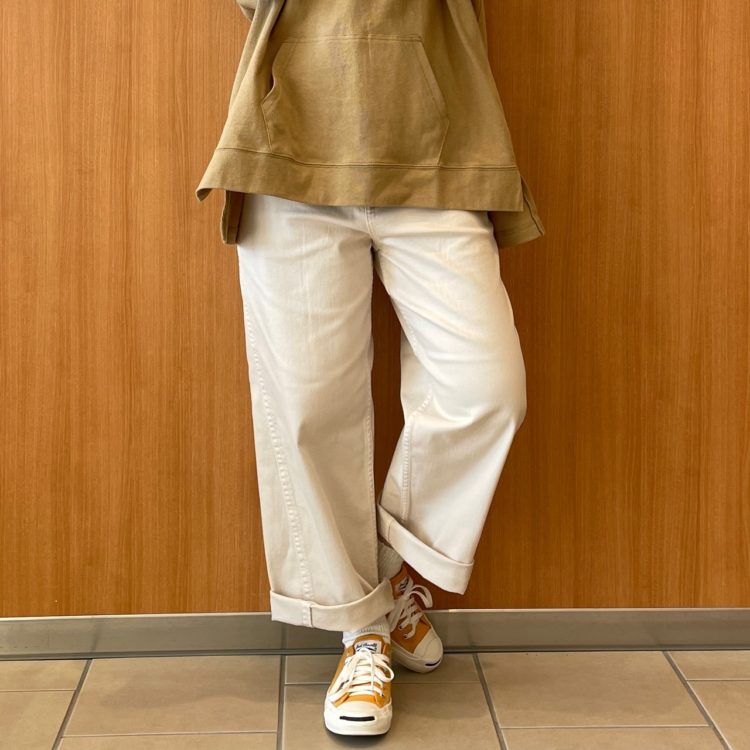 urnis outlet 北広島店のスタッフが、 直接ご対応させて頂きます。 画像だけでは分かりにくい商品の気になる点や、 通信販売も承りますので、 お気軽にご相談下さい♪ Cafettyの定番生地の カツラギストレッチを使用した ワイドストレート。 ストレッチが効いているので とっても楽ちんな穿き心地♡ 綿のナチュラルな風合いも魅力です! 股上深め&腰周りは程よくフィット!! 渡りから裾にかけてまっすぐに落ちる 計算された美シルエットで御座います♪ カジュアルコーデは勿論、 大人コーデにも使える1本です。 それでは! 本日の鈴木blogは以上で御座います!