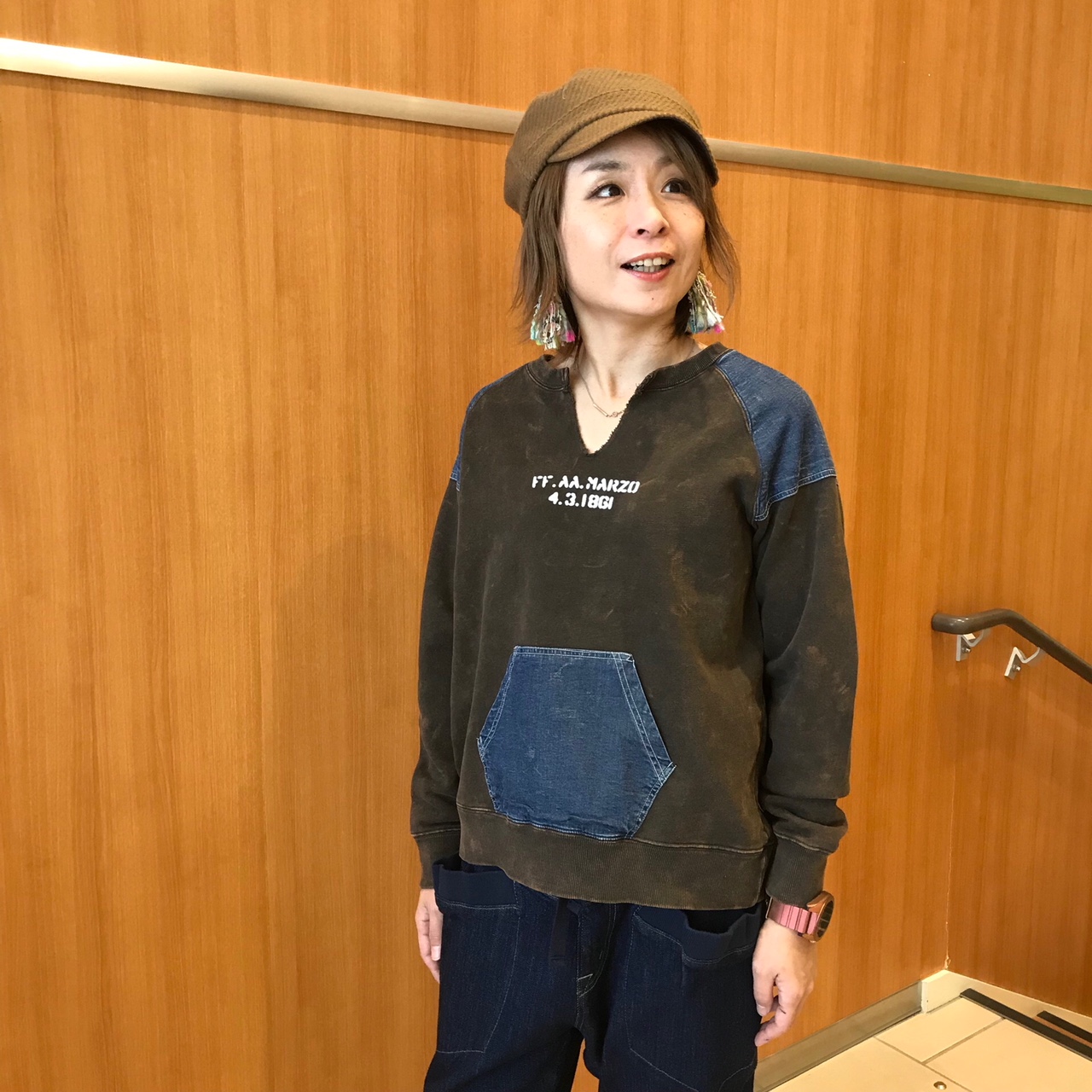 肩やポケット部分に ケミカルデニムを使用したり、 首元はVネックのカッティングに なっていたりと、ディテールにこだわった 加工が魅力的♡ 肩部分にあしらわれた デニムの切り替えが、 腕周りのラインをすっきりと 見せてくれます♪ 裏毛素材なので 春まで着られますよ~♪ 全4色です!ビンテージ感のある色合いが オトナのアメカジコーデにピッタリ♡ ノンフレ…こちらのアイテム、 コンプリートしそうな予感が(笑) ※止まれ~物欲! 最後に一つお知らせが!